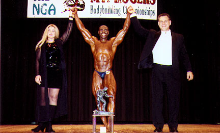 The 26th Anniversary of this event saw a sellout crowd view 86 individual athletes from 10 states converge on Northside High School auditorium to compete for this prestigious title. The quality of the bodybuilders, across the board, was extremely high. Be assured, that any athletes that placed in this event should feel honored. The prejudging started, as billed, at 12:30PM and was completed at 3PM. The finals commenced exactly at 7PM to a lively crowd, and with EVERY athlete posing, the event was completed at 10:45PM (Just in time for the annual athlete Pizza Party - You have to see 100 pizzas in a room filled with bodybuilders who have just finished their diets!).